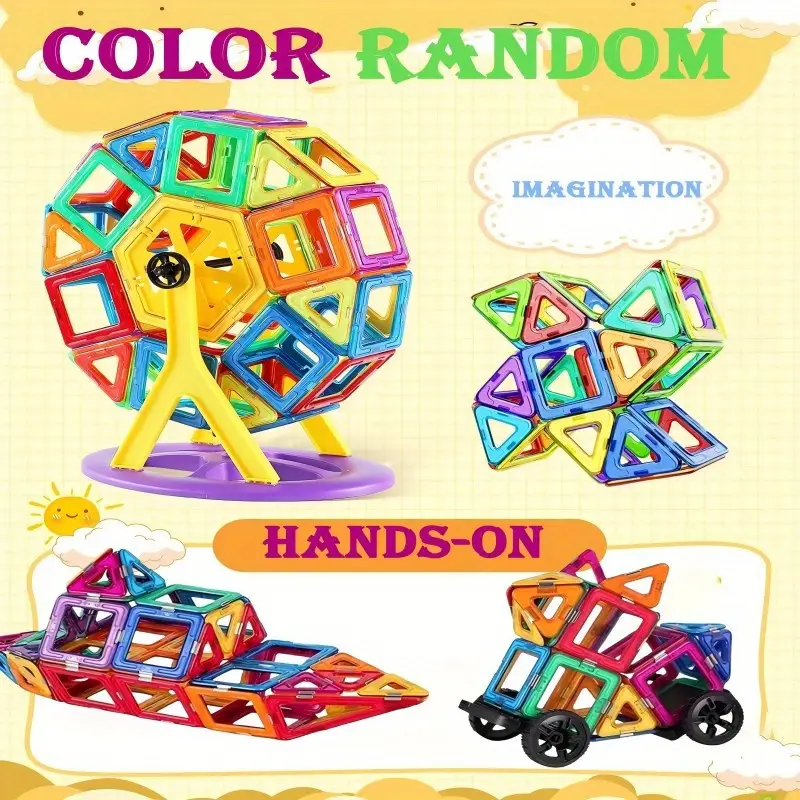 The Magnetic Building Blocks Toy Set offers an engaging way for children to develop their creativity, problem-solving skills, and hand-eye coordination while having fun. Made with high-quality, non-toxic ABS plastic, these blocks are safe, durable, and easy to handle. Each piece features strong magnets that allow kids to build stable and unique 3D structures effortlessly. With vibrant colors and different geometric shapes, this set encourages learning through play, helping children explore concepts of geometry, engineering, and design. Perfect for both boys and girls aged 3 to 8 years, it supports cognitive development while keeping kids entertained for hours. The set includes a variety of pieces that can be assembled into cars, houses, ferris wheels, animals, and more – the possibilities are endless. Compatible with other magnetic block brands, it allows for even bigger creations. Ideal as a gift for birthdays, holidays, or any special occasion, this magnetic construction kit ensures safe, educational, and fun playtime at home or in classrooms.